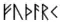 Las comillas simples, < >, indican que hay una secuencia de runas que no se puede interpretar con certeza. Otros signos especiales son las letras þ y ð. La primera de ellas es la letra thorn que representa al sonido fricativo dental sordo, como la z española. La segunda letra es ed que representa a la consonante fricativa dental sonora como la th del inglés «the». El signo R representa a la runa yr, y el ô es igual que el diacrítico islandés, ǫ.[4]