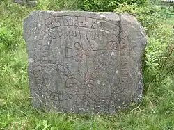 - [rahnfriþr * lit rt stain þino ' aftiR biurno sun þaiRa kitilmuntaR ' hon ' fil a urlati ' kuþ hialbi hons ant auk| |kuþs muþiR ' osmunr mar'kaþi runaR ritar]