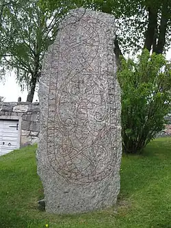 - "Bjôrn y Ígulfríðr erigieron esta piedra en memoria de Ótryggr, su hijo. Él fue asesinado en Finland."