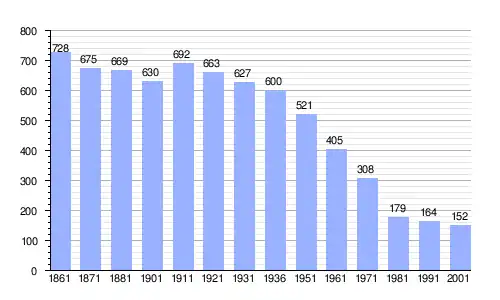 | Gráfica de evolución demográfica de Pietraferrazzana entre 1861 y 2001 |