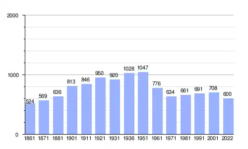 | Gráfica de evolución demográfica de Pietrarubbia entre 1861 y 2022 |