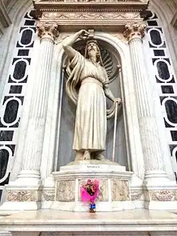 - Estatua de doliente en el interior de la capilla Dellachà de Moncalieri.