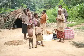 Unos baka cerca de su poblado en las selvas del este de Camerún (2008). | ||