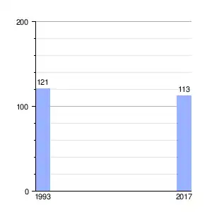 | Gráfica de evolución demográfica de Pilán entre 1993 y 2017 |