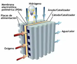 - ↑ Daud, W. R. W.; Rosli, R. E.; Majlan, E. H.; Hamid, S. A. A.; Mohamed, R.; Husaini, T. (1 de diciembre de 2017). «PEM fuel cell system control: A review». Renewable Energy (en inglés) 113: 620-638. ISSN 0960-1481. doi:10.1016/j.renene.2017.06.027.