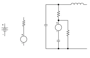 Las propiedades puramente eléctricas de una pila se representan mediante el modelo adjunto. En su forma más sencilla, está formado por una fuente de tensión perfecta —es decir, con resistencia interna nula— en serie con un resistor que representa la resistencia interna. El condensador de la versión más compleja es enormemente grande y su carga simula la descarga de la pila. Además de ello, entre los terminales también aparece una capacitancia, que no suele tener importancia en las aplicaciones de corriente continua.