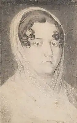 ![]() José Ribelles: Retrato de Pilar Ulzurrun de Asanza, esposa del pintor, dibujo a lápiz y carboncillo sobre papel. | ||