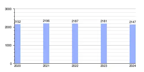 Hasta 2024 la población era de 2147 habitantes,[2] con una densidad de población de 124,75 hab/km².[2]