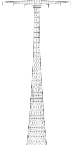 Una torre eléctrica de diseño similar (hiperboloide de revolución) es la torre de Shújov en el río Oká, en Rusia.