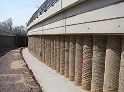 Se trata de pilotes por desplazamiento de las tierras por medio de una barrena continua. Posteriormente se ejecuta el hormigonado por bombeo por el tubo central existente en el interior de la barrena.