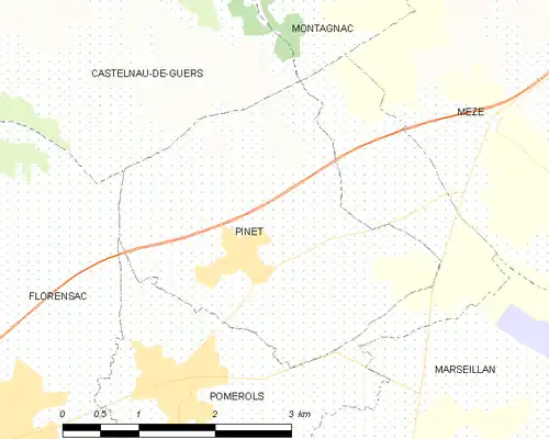 Pinet es una población y comuna francesa, situada en la región de Occitania, departamento de Hérault, en el distrito de Béziers y cantón de Pézenas.