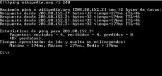Si ejecutamos ping 208.80.154.224 (IP de Wikipedia) podremos verificar si la conexión a Internet está funcionando.