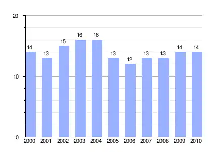 Población de derecho (2000-2010) según los censos de población del INE a 1 de enero de cada año.[8] |