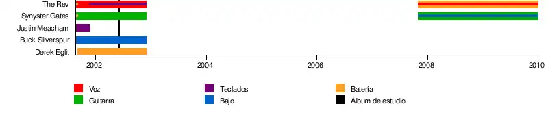 - The Rev (Rathead): voz, piano, batería (2001-2002; 2007-2009, fallecido).
