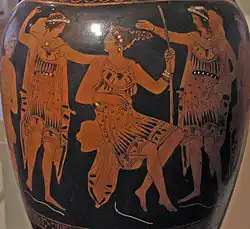 - ↑ Museo J. Paul Getty (1991). Greek Vases in the J. Paul Getty Museum (en inglés). Malibi: Getty Publications. p. 120. ISBN 978-08-9236-184-7.