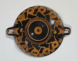 - ↑ «Número de inventario 48.2747». Kylix with Running Warriors (en inglés). Consultado el 9 de marzo de 2021.
