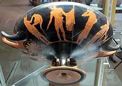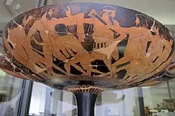 ---- | Attic Red-figure kylix | 460-450 BC | Int: Apoteosis de Teseo, Ext: Combate | ||