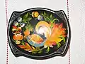 - Zerniatko (semilla): una pincelada inversa a la hrebinets, con una presión inicial ligera y una presión final fuerte. Al aplicar estas pinceladas a ambos lados de un tallo, el resultado se asemeja a una espiga de trigo.