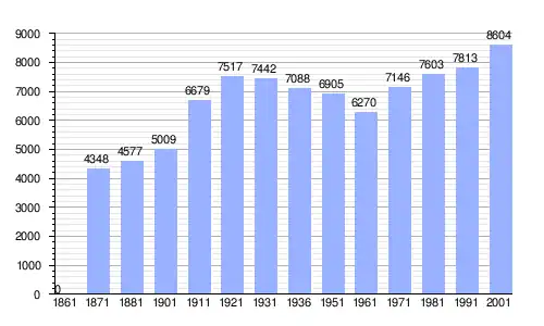 | Gráfica de evolución demográfica de Piombino Dese entre 1861 y 2001 |