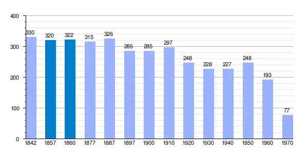 | Gráfica de evolución demográfica de Pipaón[4] entre 1842 y 1970 |