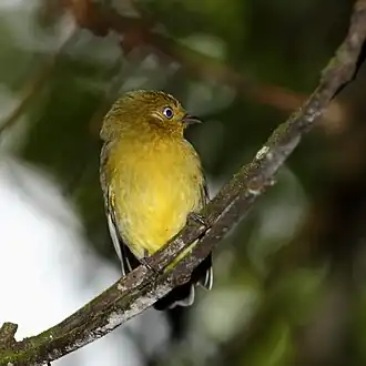 Ejemplar hembra de saltarín naranja (Pipra fasciicauda) en la misma localidad. | ||