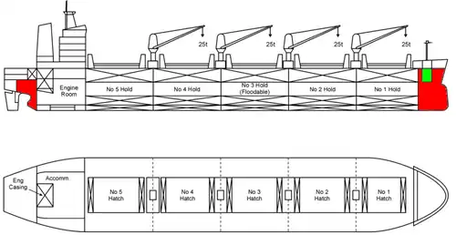 En la zona de popa existe también otro tanque de iguales características denominado Pique de popa ambos marcados en rojo en el esquema adjunto.