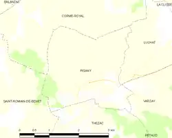 Pisany es una población y comuna francesa, situada en la región de Poitou-Charentes, departamento de Charente Marítimo, en el distrito de Saintes y cantón de Saujon.