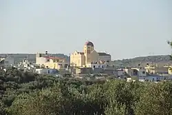 Cerca de este pueblo, en la colina Katrinia, hay un yacimiento arqueológico donde se ubicaba un santuario minoico que estuvo en uso entre los periodos minoico medio II y minoico tardío I (1700-1500 a. C.) En este yacimiento se han encontrado numerosos objetos, como figurillas de arcilla, tanto masculinas como femeninas y de animales, vasijas, utensilios de cocina, cuentas, lámparas y escarabeos. En las figurillas femeninas sobresalen los peinados, extraordinariamente complejos y algunas representan mujeres embarazadas. En las masculinas, la parte inferior del tronco y las piernas aparecen moldeadas de manera muy voluminosa.[2][3]