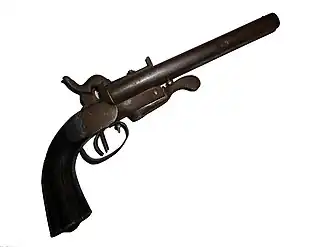 Las primeras pistolas Howdah de retrocarga eran poco menos que fusiles recortados,[2] que usualmente disparaban los cartuchos .577 Snider[3] o .577/450 Martini-Henry. Esto era una ventaja, ya que el cazador podía emplear el mismo cartucho en el fusil y en la pistola, además de su gran potencia.[4] Más tarde los armeros ingleses produjeron pistolas Howdah bajo pedido,[3] tanto para cartuchos de fusil como para cartuchos de revólver como el .455 Webley y el .476 Enfield.[2] En consecuencia, el término "pistola Howdah" es frecuentemente aplicado a varias pistolas inglesas de cañón múltiple, inclusive la pistola Lancaster (disponible en calibres que iban desde 9 mm a 14,5 mm)[5] y diversos revólveres de 14,5 mm producidos en Inglaterra y Europa a fines del siglo XIX.[6] Una pistola Howdah de retrocarga tiene una velocidad de boca más alta que un revólver del mismo calibre, porque no padece la fuga de gases entre el tambor y el cañón del revólver.[4]