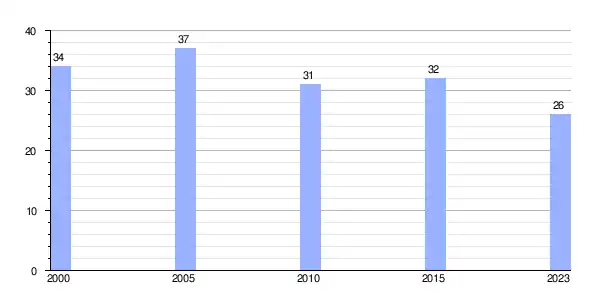 | Gráfica de evolución demográfica de Pitelos (lugar) entre 2000 y 2023 |