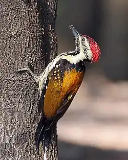 - ↑ Rajan,S Alagar (1992). «Unusual foraging site of Goldenbacked Woodpecker Dinopium benghalense (Linn.)». J. Bombay Nat. Hist. Soc. 89 (3): 374.