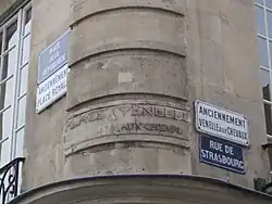 - Esta obra contiene una traducción parcial derivada de «Plaque de rue» de Wikipedia en francés, publicada por sus editores bajo la Licencia de documentación libre de GNU y la Licencia Creative Commons Atribución-CompartirIgual 4.0 Internacional.