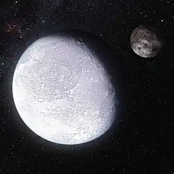 ) es el segundo planeta enano más grande después de Plutón. Fue descubierto por el equipo de Michel Brown, Chad Trujillo, y David Lincoln Rabinowitz el 8 de enero de 2005 a partir de imágenes tomadas el 21 de octubre de 2003, y fue nombrado por la diosa/titánide Eris que por sí mismo la palabra en griego antiguo significaba directamente discordia. Es en diámetro más pequeño que Plutón pero con una masa 27% superior. En su momento se le consideró como el décimo planeta por lo que motivó a la Unión Astronómica Internacional a replantear el término planeta si en un futuro se descubriese otros cuerpos.