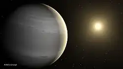 [1] Un planeta de helio es un tipo teórico de planeta que potencialmente se puede formar a partir de estrellas enanas blancas de masa baja, en cuyo caso el planeta contiene poco hidrógeno (en contraste, los planetas gigante de gas como Júpiter y Saturno consisten principalmente de hidrógeno y helio). Los planetas de helio se podrían formar de varias maneras. El candidato más probable a planeta de helio es WD 1856 b, es aproximadamente siete veces más grande que la enana blanca, llamada WD 1856 + 534, solo un 40% más grande que la Tierra. El exoplaneta orbita en torno a ella cada 34 horas, más de 60 veces más rápido que Mercurio alrededor de nuestro Sol. El descubrimiento de dicho planeta fue confirmado en 2020.