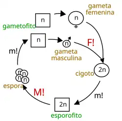 Las plantas poseen alternancia de generaciones determinada por un ciclo de vida haplodiplonte, en donde el óvulo y el anterozoide se desarrollan asexualmente hasta ser multicelulares, aunque en muchas plantas son pequeños y están enmascarados por estructuras del estadio diplonte.