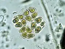- ↑ Bhattacharya, D., Schmidt, H. A. 1997. «Division Glaucocystophyta.» In Origin of algae and their plastids (ed. Bhattacharya, D., coordinador.) pp. 139-148 Wien, New York: Springer-Verlag.