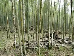 Varias especie de bambú (subfamilia Bambusoideae) se encuentran en toda la isla del sudeste de Asia, el sudeste de Asia continental, en el este y sur de Asia. En las regiones austronesias, los diferentes tipos de bambúes tienen nombres diferentes, así como también los productos hechos a partir de los mismos. Se utilizan de diversas maneras como materiales de construcción, equipos de pesca, instrumentos musicales, cuchillos, recipientes para agua y comida, etc. Los brotes de bambú también son una fuente alimentaria en el Sudeste asiático. Los colonos austronesios transportaron algunas especies de bambú cuando colonizaron las islas del Pacífico. Estas especies incluyen el ʻohe (Schizostachyum glaucifolium), el bambú común (Bambusa vulgaris), y el bambú de la India (Bambusa bambos).[39][40]