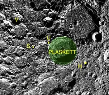 Por convención estos elementos son identificados en los mapas lunares poniendo la letra en el lado del punto medio del cráter que está más cercano a Plaskett.