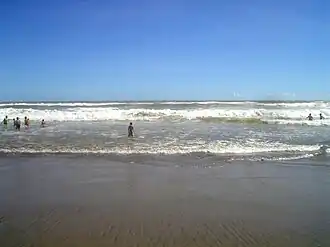 Dicha playa caracterizada por su intenso y alto oleaje, es ideal para la práctica de diversos deportes acuáticos, entre ellos destaca el surf para los experimentados jóvenes, en su mayoría nativos, que desafían las intensas olas y marejadas a grandes distancias de la orilla. Dicho deporte, solo es recomendable para gente con experiencia en el deporte y en la manía del lugar ya que representa un gran peligro debido a las intensas corrientes y marejadas directas provenientes del Océano.