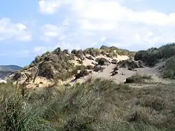 Se trata de zona de dunas de menos de una hectárea aunque en sus comienzos se trataba de la mayor de Asturias pero la industrialización (con la construcción de empresas como Cristalería Española o Asturiana de Zinc y el crecimiento urbanístico de Salinas, Raíces y San Juan dejó su tamaño reducido al de ahora desde el kilómetro que antes casi medía, entre los acantilados de Pinos Altos y el mar. Presenta dos zonas bien diferenciadas, la primera es un muro dunar formado por dunas blancas que en algunas zonas alcanza los 15 metros de alto. Tras este muro se encuentra el resto de la zona dunar con dunas grises.