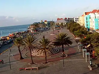 En el lado sur de la plaza se encuentra la Riffort (ahora un centro comercial con galerías, tiendas y restaurantes). En la esquina suroeste esta un edificio colonial que alberga la estación de policía. En el lado occidental de la plaza se encuentra un hotel, tiendas y detrás los edificios religiosos católicos. El lado norte de la plaza está bordeado por un hotel-casino con Otrabanda en la esquina occidental y una sección del Museo Kura Hulanda. El lado oriental de la plaza está rodeada por el agua que da acceso a la Bahía Anna; a través del Puente de la Reina Emma.