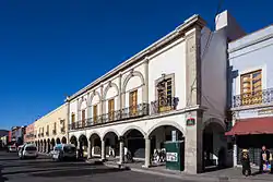 - Mercado 1 de mayo, durante la Nueva España se conocía como la Plaza de Mercaderes, un amplio espacio abierto, en el que tenían cabida los lunes poco más de un centenar de puestos semifijos, que se reducían a un tercio el resto de los días de la semana.[18] Durante el siglo XIX, se construye una hostería en el lugar.[18] Hacia 1905, después de diversas adaptaciones, el edificio se convirtió en el "Mercado Libertad" que se mantuvo en operaciones por cerca de 20 años, hasta que a finales de 1924, se determinó demoler el deficio para construir uno nuevo el 1 de mayo de 1926, se inaugura el Mercado 1 de mayo, por el presidente Plutarco Elías Calles.[18]