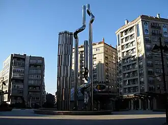 En 2001 se edificó un monumento en el centro de la plaza consistente en varias chimeneas metálicas, creadas por Jesús Valmaseda, arquitecto vigués de origen castellano-manchego. Las estructuras con forma de chimenea, de ocho metros de altura y construidas en aluminio, ocupan el centro de lo que antiguamente fuera una rotonda.