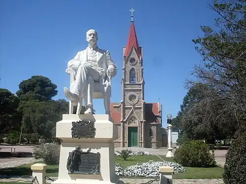 El 25 de mayo de 1972 se construye el monumento a Domingo Faustino Sarmiento, esta obra está ubicada en un bulevar que separa la calle Ameghino en dos manos. Entre la plaza y la escuela N.º 1 de nombre homónimo al monumento nombrado. Otro prócer que recibiría reconocimiento a través de una arquitectura en la plaza sería el Almirante Guillermo Brown. La misma se presentó un 17 de mayo de 1982.