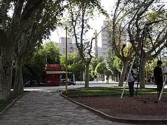 La Plaza Laprida se constituyó en paseo cuando en septiembre de 1904 fue inaugurada una estatua del prócer, pero recién después de 1911, con la creación de la Escuela Normal Superior Sarmiento en sus cercanías, adquirió importancia. En la década de 1930 era el lugar elegido para mostrar la fuerza de los grupos políticos y criticar intervenciones.[2]