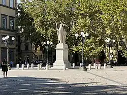 En el centro de la Plaza se encuentra la imponente estatua de la Duquesa de Lucca María Luisa de Borbón, realizada por Lorenzo Bartolini en 1843.[2]