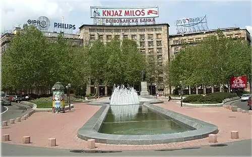 Cuando se construyó todo el barrio de Terazije, en la segunda mitad del siglo XIX, también se construyeron en la zona de la plaza actual edificios de una o dos plantas, entre los cuales el antiguo Ayuntamiento que, durante la ocupación nazi fue sede de la Gestapo. Entre las dos guerras mundiales se construyeron nuevos edificios, entre ellos el del Banco Agrario (Agrarna banka) que, durante el período yugoslavo fue sede del Comité central del Partido Comunista, del periódico Vreme, el cine "Beograd"...