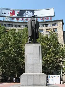 A finales de los años ochenta del siglo XX, con la caída del sistema político comunista, se cambiaron muchos topónimos de Belgrado, entre ellos la antigua Plaza de Marx y Engels, que se dedicó a Nikola Pašić, importante político de principios del siglo XX que fue varias veces Primer ministro entre 1891 y 1926. En 1989 se erigió en el centro de la plaza, detrás de la fuente, que mientras tanto había sido ampliada, una estatua que retrata al gran estadista.
