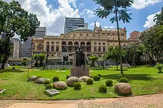 En el centro de la plaza se encuentra el monumento a Carlos Gomes, inaugurado en 1922 en ocasión del centenario de la Independencia de Brasil. El conjunto escultórico fue realizado por el escultor Luigi Brizzolara.[1][2]