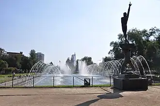 ![]() Vista del monumento a Rodó y a la Fuente Bicentenario, en la Plaza a la Aviación. | ||